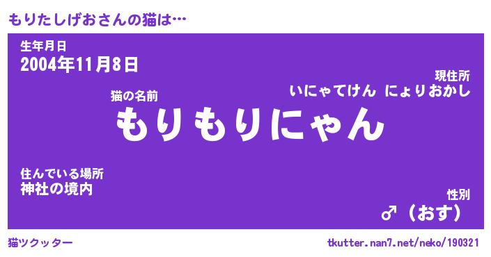 | ポケモン風あだ名 | 『モリチュウ』『モリタダネ』 |