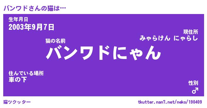 | 意味不明あだ名 | 『ペロリンバンワド』『永久保存バンワド』 |