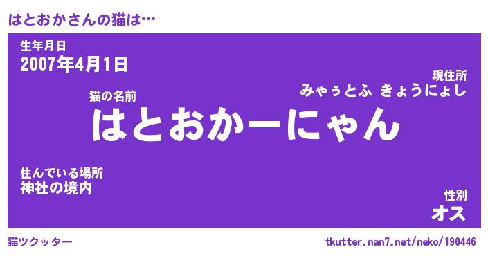 | 生年月日? …「くろねこ」 | 8月01日 10:16 |