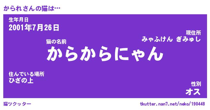 | 生年月日? …「くろねこ」 | 8月01日 10:16 |