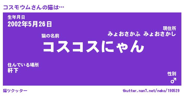 | ファンタジー風あだ名 | 『コスフェル』『エターナルコスモウムー』 |
