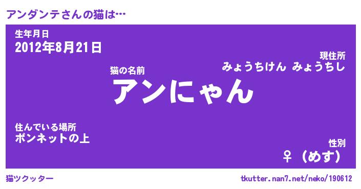 | ポケモン風あだ名 | 『アンチュウ』『アンダダネ』 |