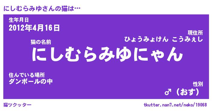 | 男性向けラノベタイトル風あだ名 | 『にしむらみゆの憂鬱』 |