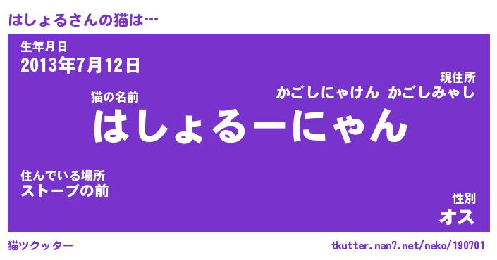 | 生年月日? …「くろねこ」 | 8月01日 10:16 |