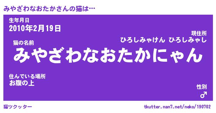 | 男性向けラノベタイトル風あだ名 | 『みやざわなおたかの憂鬱』 |