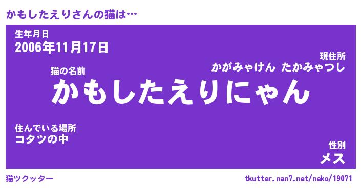 | 男性向けラノベタイトル風あだ名 | 『かもしたえりの憂鬱』 |