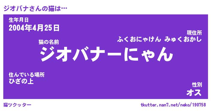 | 意味不明あだ名 | 『ペロリンジオバナ』『永久保存ジオバナ』 |