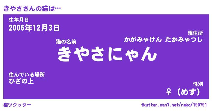 | ファンタジー風あだ名 | 『キヤフェル』『エターナルキヤサー』 |