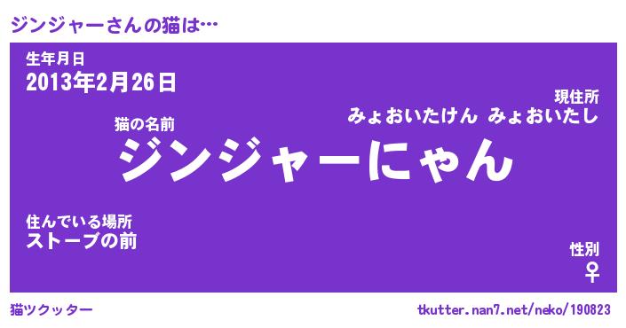 | ファンタジー風あだ名 | 『ジンフェル』『エターナルジンジャーー』 |
