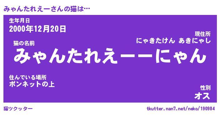 | ツイッター | みゃんたれえーさんのツイッターID『namakemono_star』 |