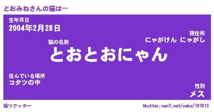 | 生年月日? …「くろねこ」 | 8月01日 10:16 |