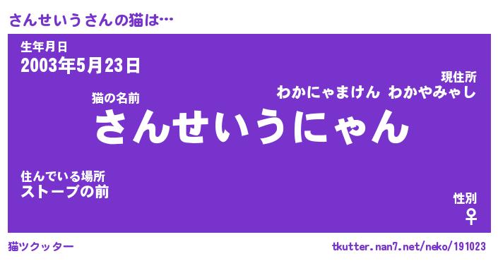| 生年月日? …「くろねこ」 | 8月01日 10:16 |