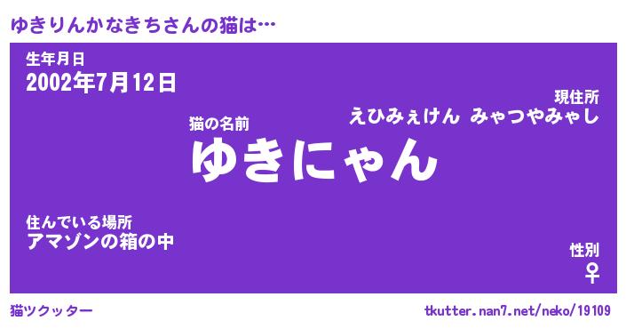| ツイッター | ゆきりんかなきちさんのツイッターID『kikurage_nyan』 |