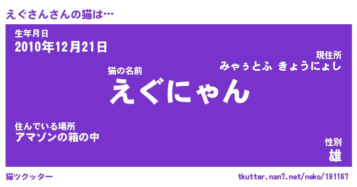 | 意味不明あだ名 | 『ペロリンえぐさん』『永久保存えぐさん』 |