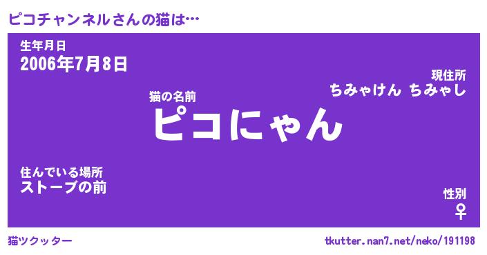 | ポケモン風あだ名 | 『ピコチュウ』『ピコチダネ』 |