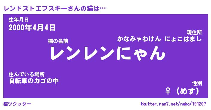 | ポケモン風あだ名 | 『レンチュウ』『レンドダネ』 |