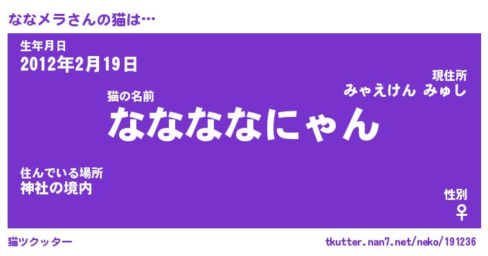 | 意味不明あだ名 | 『ペロリンななメラ』『永久保存ななメラ』 |
