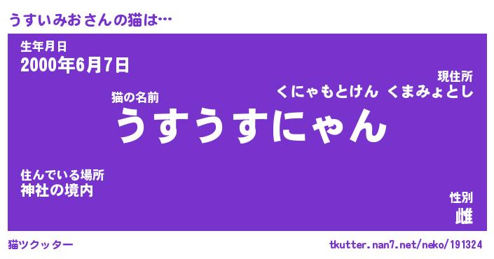 | ファンタジー風あだ名 | 『ウスフェル』『エターナルウスイミオー』 |