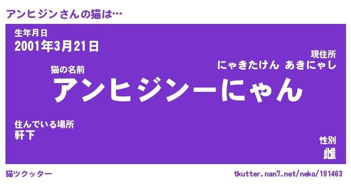 | ポケモン風あだ名 | 『アンチュウ』『アンヒダネ』 |