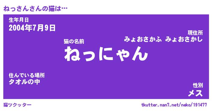 | 生年月日? …「くろねこ」 | 8月01日 10:16 |