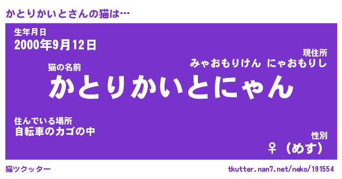 | 男性向けラノベタイトル風あだ名 | 『かとりかいとの憂鬱』 |