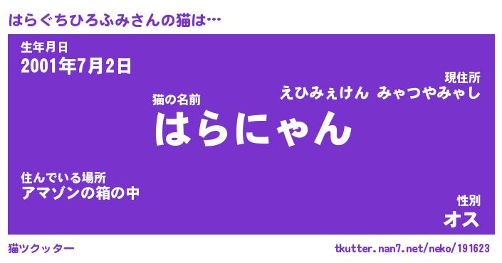 | 生年月日? …「くろねこ」 | 8月01日 10:16 |