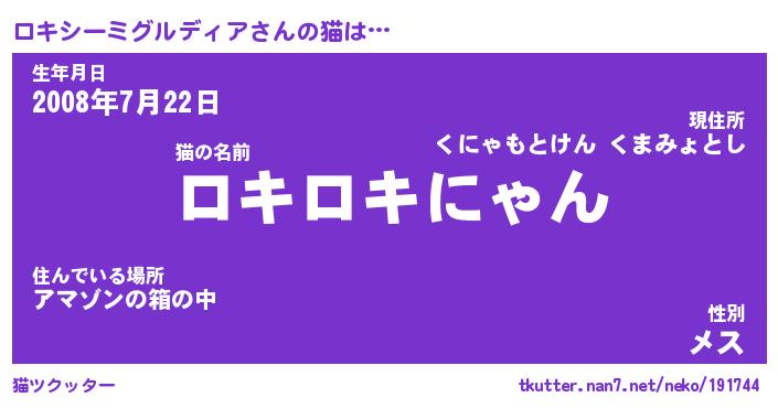 | 2回繰り返すあだ名 | 『ロキロキ』『ロロキキ』『ぬらぬら』 |
