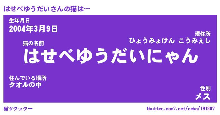 | 生年月日? …「くろねこ」 | 8月01日 10:16 |