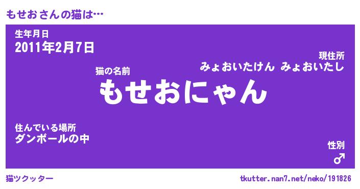 | ヘコむあだ名 | 『もせもー』『酢こんぶ』『もせっ子』 |
