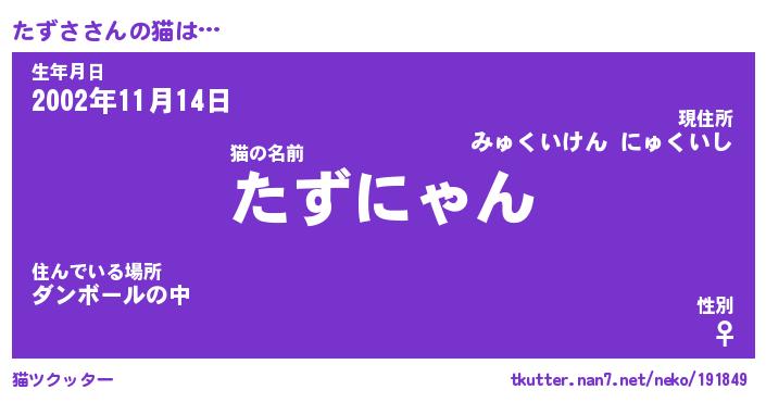 | ヘコむあだ名 | 『たずにー』『なまこ酢』『たずっ子』 |