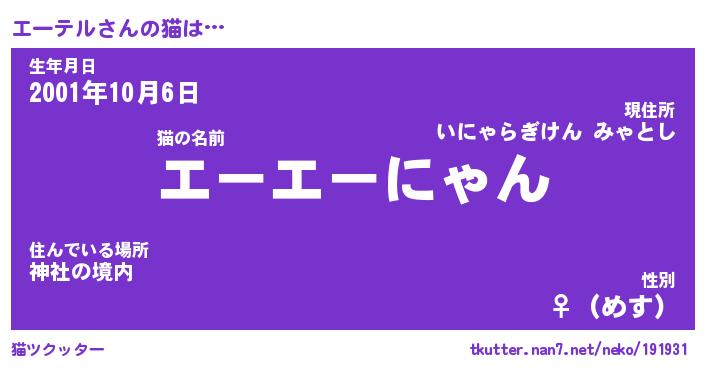 | 生年月日? …「くろねこ」 | 8月01日 10:16 |