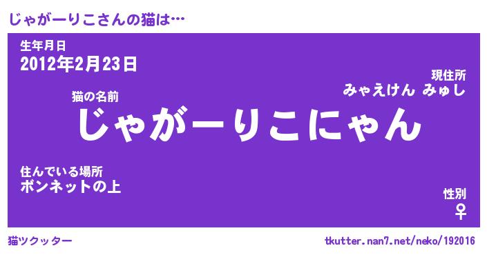 | ポケモン風あだ名 | 『ジャチュウ』『ジャガダネ』 |