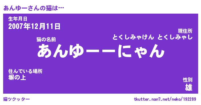 | 意味不明あだ名 | 『ペロリンあんゆー』『永久保存あんゆー』 |