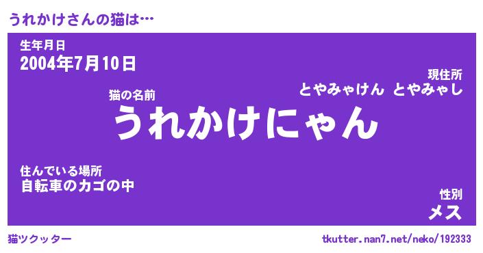 | ポケモン風あだ名 | 『ウレチュウ』『ウレカダネ』 |