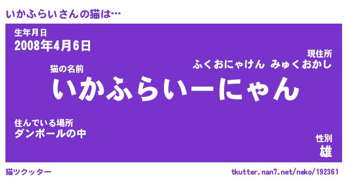 | ファンタジー風あだ名 | 『イカフェル』『エターナルイカフライー』 |