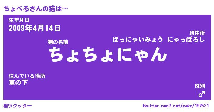 | ポケモン風あだ名 | 『チョチュウ』『チョベダネ』 |