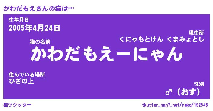 | ファンタジー風あだ名 | 『カワフェル』『エターナルカワダモエー』 |