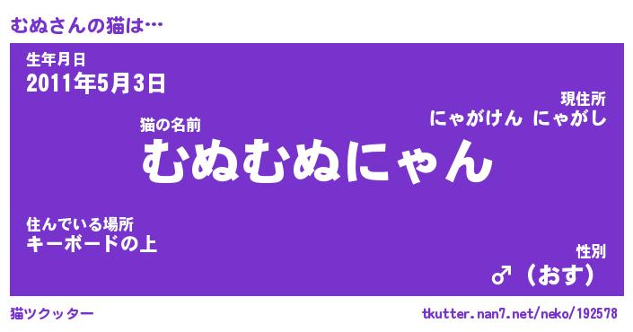 | ポケモン風あだ名 | 『ムヌチュウ』『ムヌダネ』『ヒムヌ』 |