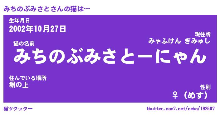 | ツイッター | みちのぶみさとさんのツイッターID『namakemono_nyan』 |