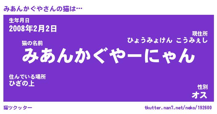 | 伝説のあだ名 | 『封印されし傭兵みあんかぐや』 |