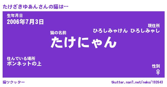 | ヘコむあだ名 | 『たけにー』『牛乳』『たけぷりん』 |