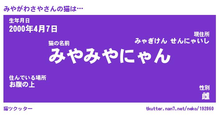 | ポケモン風あだ名 | 『ミヤチュウ』『ミヤガダネ』 |