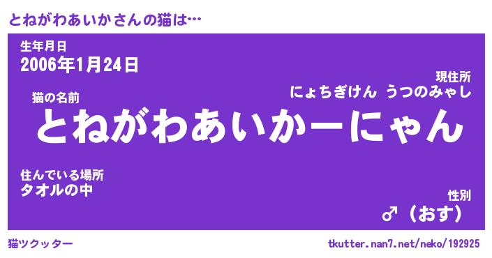 | ヘコむあだ名 | 『とねもー』『豆乳』『とねっちょ』 |
