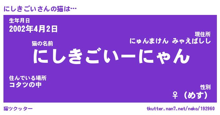 | ファンタジー風あだ名 | 『ニシフェル』『エターナルニシキゴイー』 |
