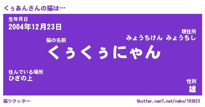 | 2回繰り返すあだ名 | 『くぅくぅ』『くくぅぅ』『ぬれぬれ』 |