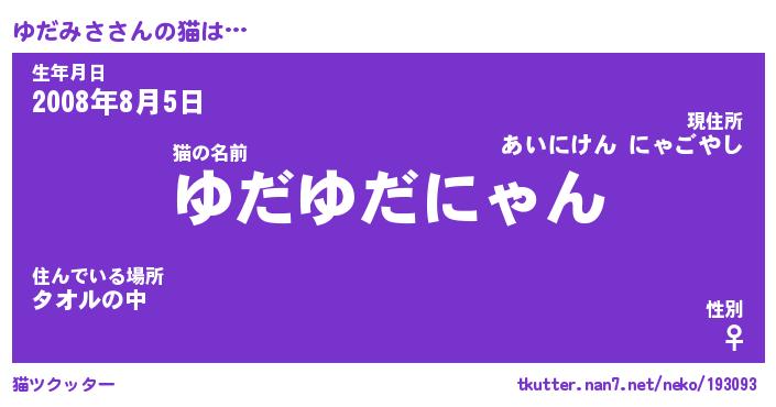 | ヘコむあだ名 | 『ゆだにゅー』『なまこ酢』 |