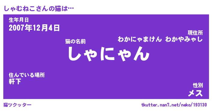| 男性向けラノベタイトル風あだ名 | 『しゃむねこの憂鬱』 |