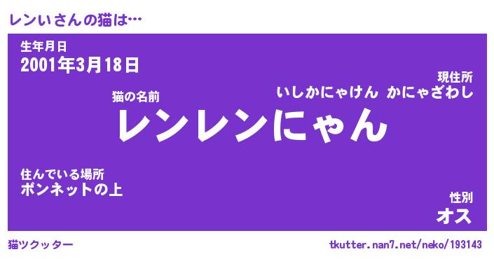 | 意味不明あだ名 | 『ペロリンレンい』『レンいフォーエバー』 |