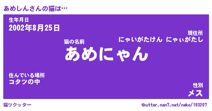 | ポケモン風あだ名 | 『アメチュウ』『アメシダネ』 |
