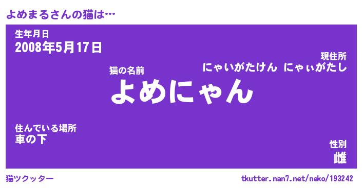 | 意味不明あだ名 | 『ペロリンよめまる』『永久保存よめまる』 |
